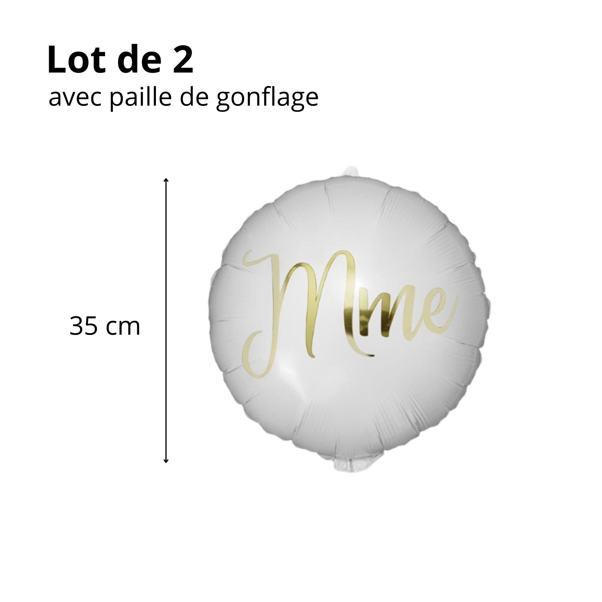 Célébrez votre union avec ce pack de ballons métalliques spécialement conçu pour les mariages. Composé de deux ballons de 35 cm, il est disponible en trois variantes : Mr et Mme, Mr et Mr et Mme et Mme, pour s’adapter à toutes les unions.