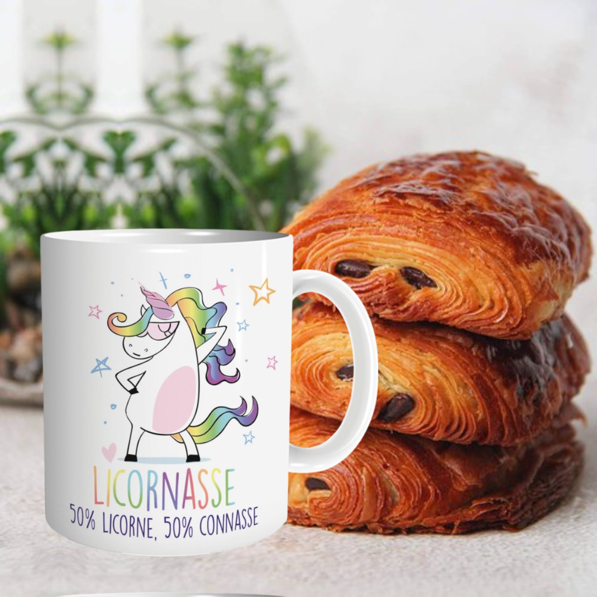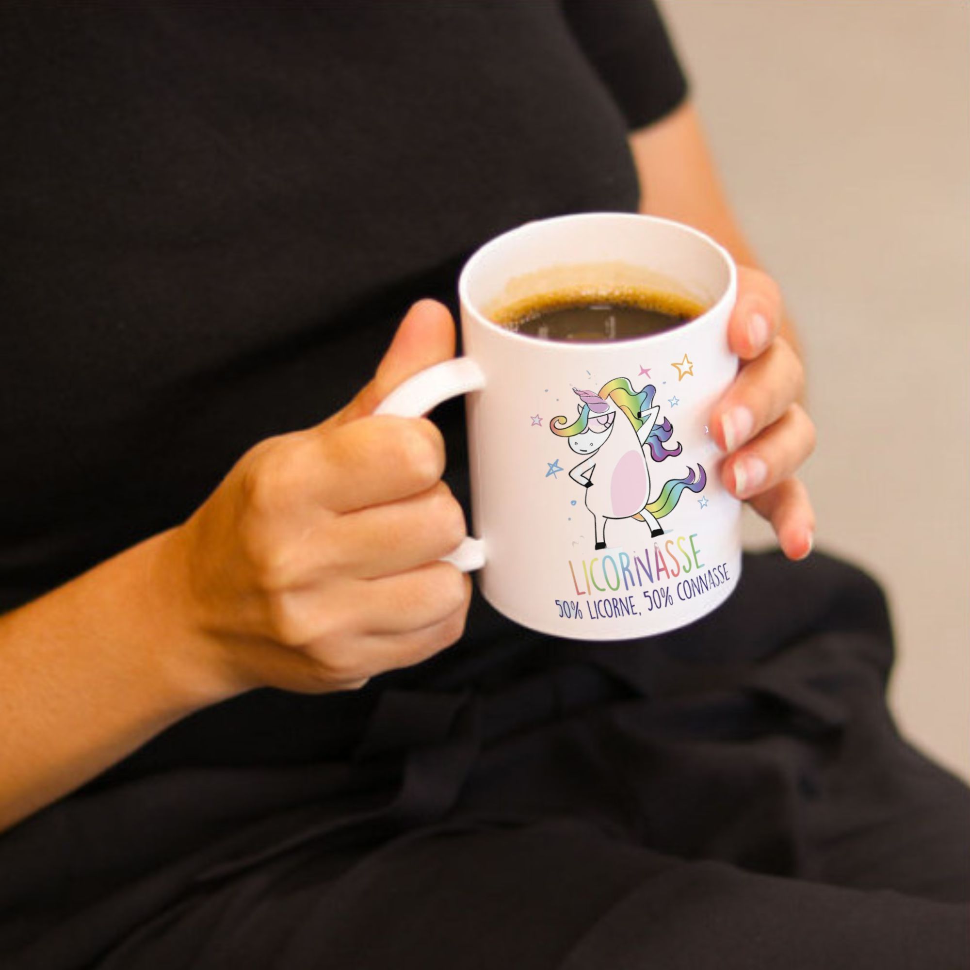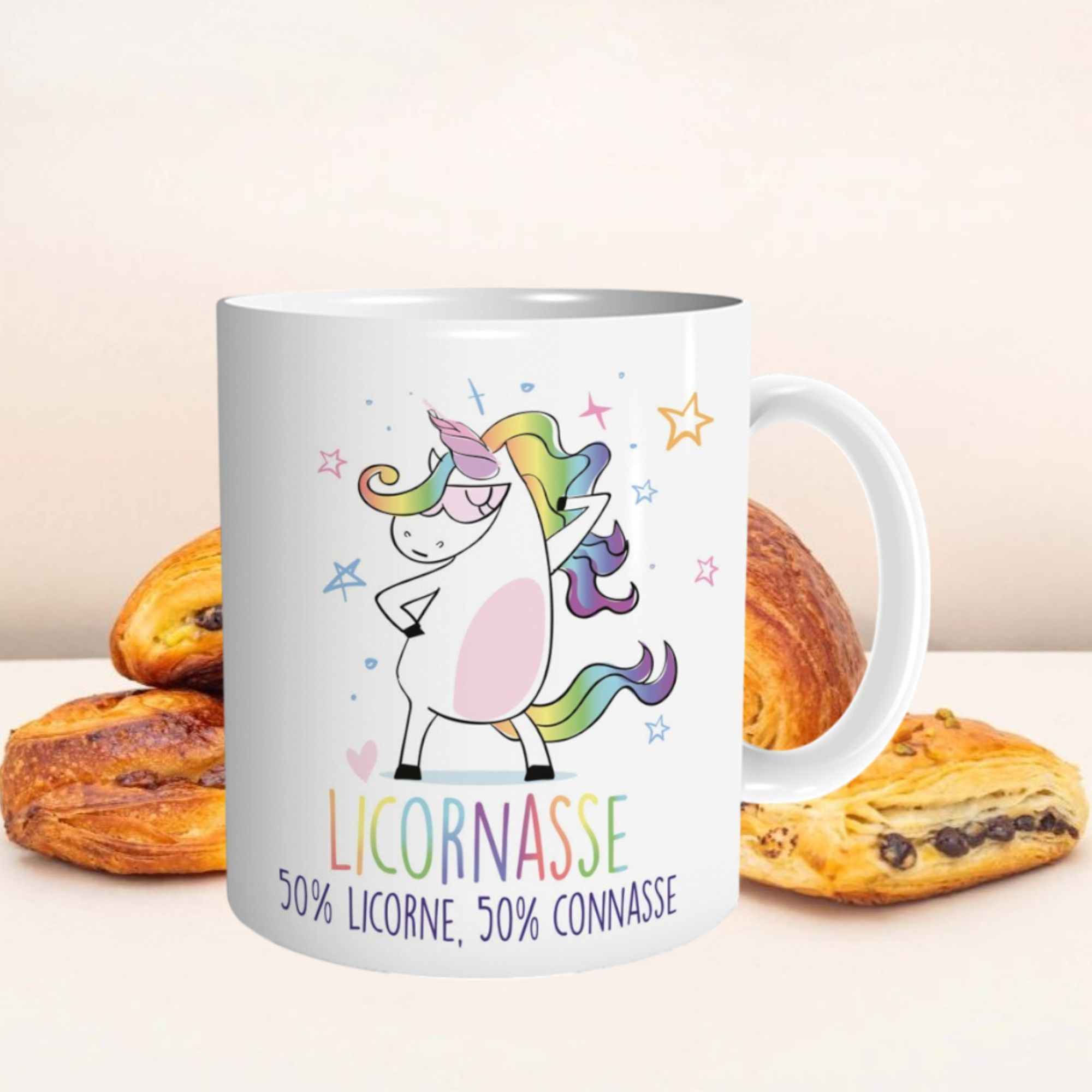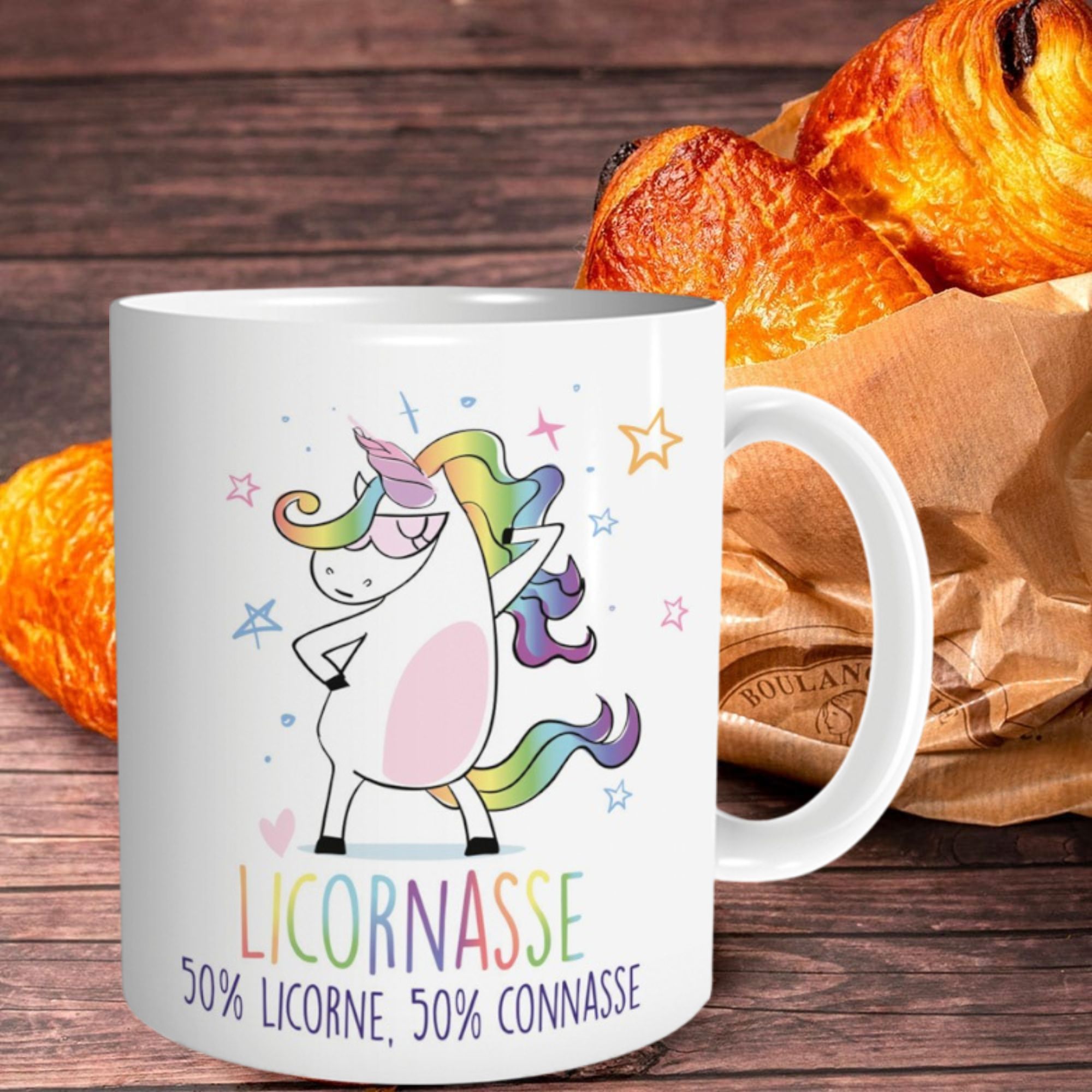 Envie d’un mug qui reflète ta personnalité haute en couleur et sans filtre ? Le mug “Licornasse – 50% Licorne, 50% Connasse” est fait pour toi (ou pour offrir à celle qui le mérite). Avec sa licorne badass et son message hilarant, il allie féérie et franchise à la perfection.