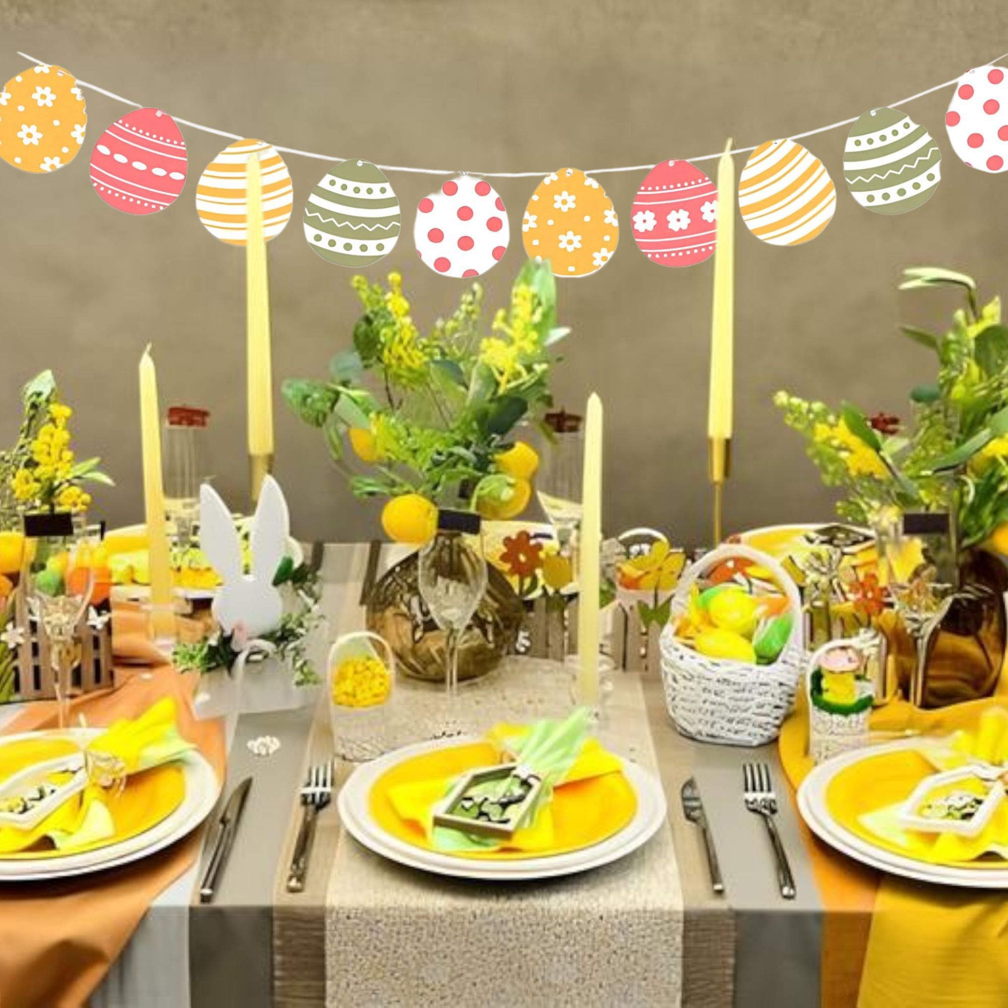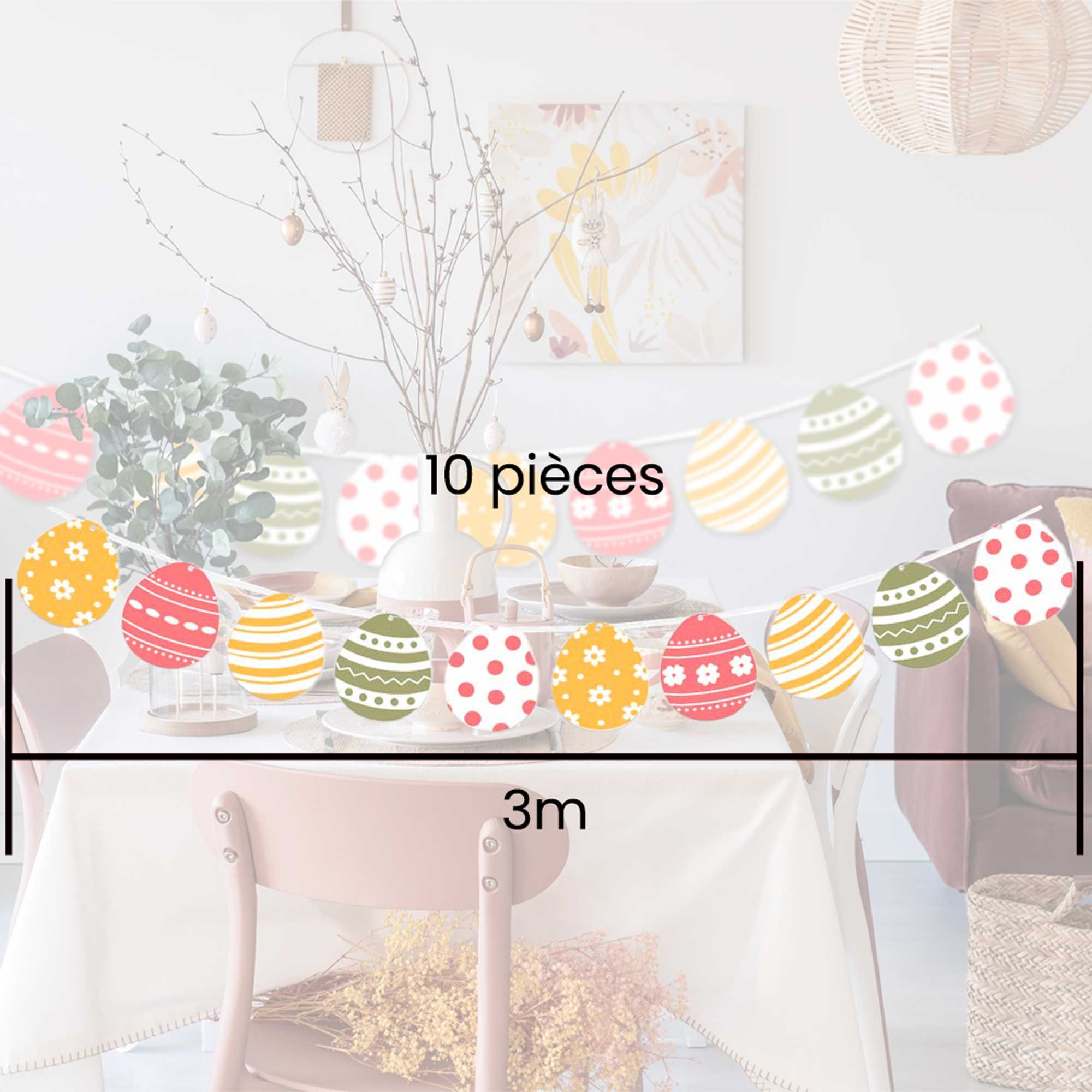 Guirlande 10 Fanions motif Œufs de Pâques - Longueur : 3 mètres