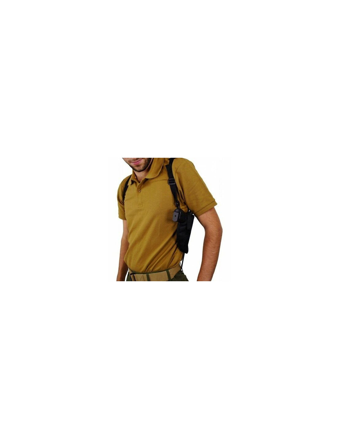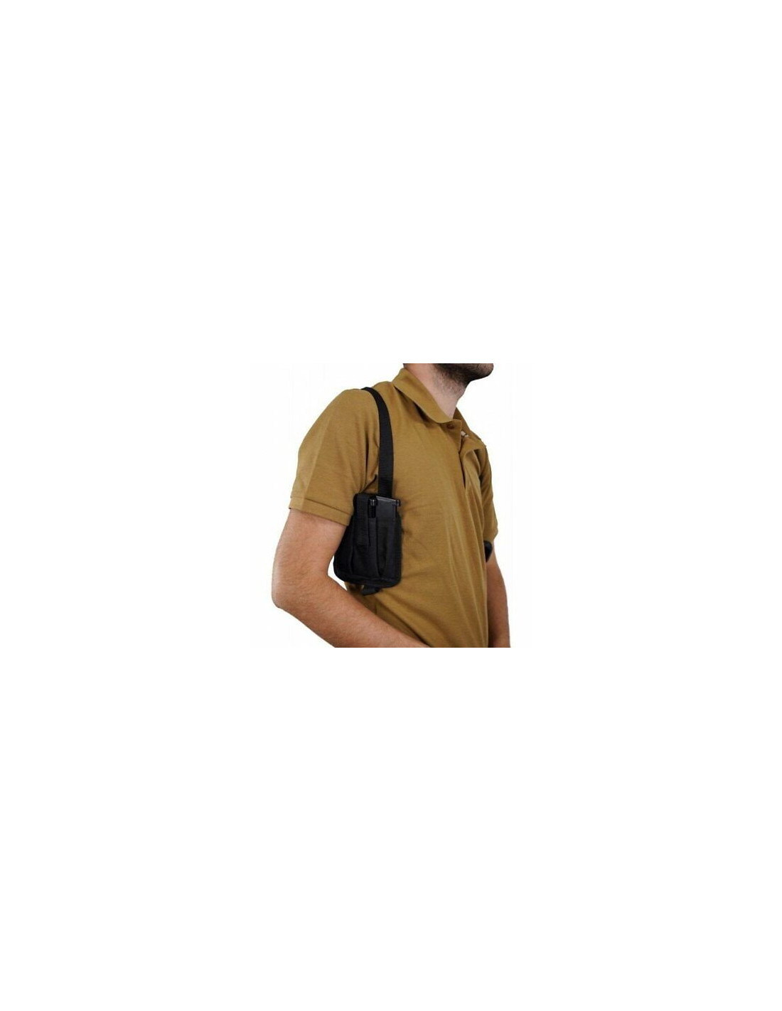 Un holster de marque swiss arms se positionne sous l' aisselle gauche et permet de ranger votre pistolet à bille ou réplique airsoft à l' horizontale.