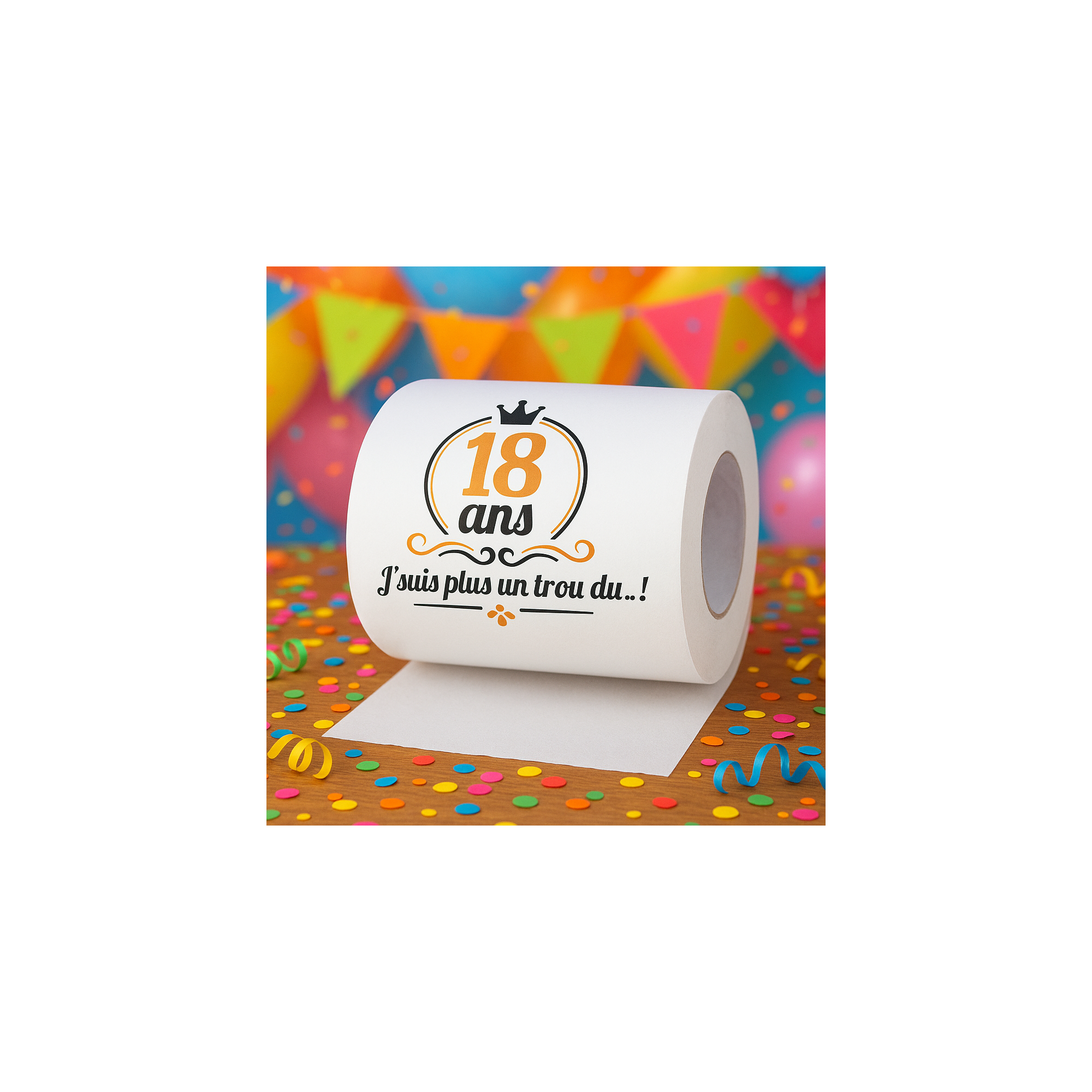 Ce papier WC allie utilité et fun, parfait pour des fêtes d'anniversaires mémorables ou des départs à la retraite. Placé dans les toilettes, il fera sourire vos invités et marquera les événements avec une touche décalée.