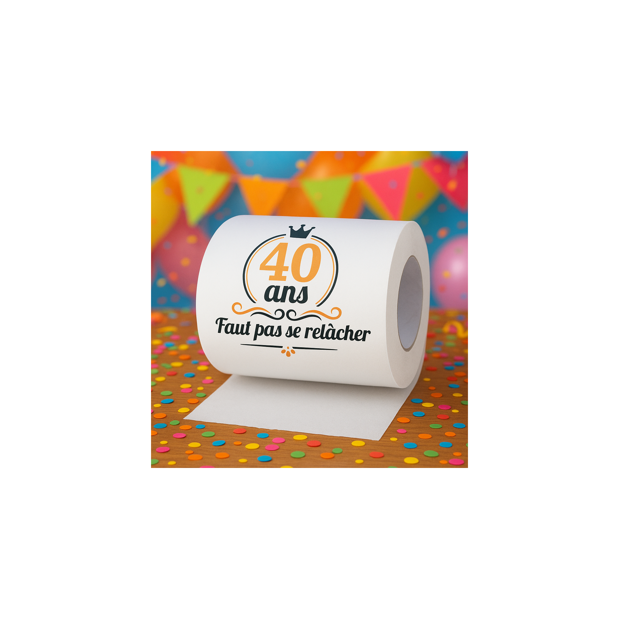 Ce papier WC allie utilité et fun, parfait pour des fêtes d'anniversaires mémorables ou des départs à la retraite. Placé dans les toilettes, il fera sourire vos invités et marquera les événements avec une touche décalée.