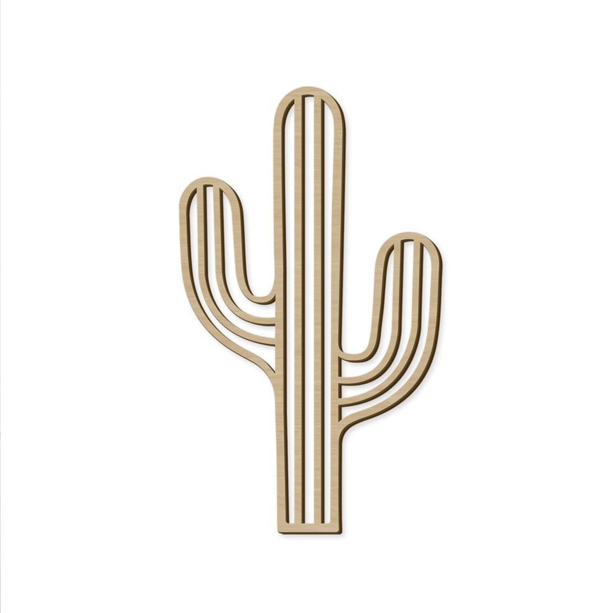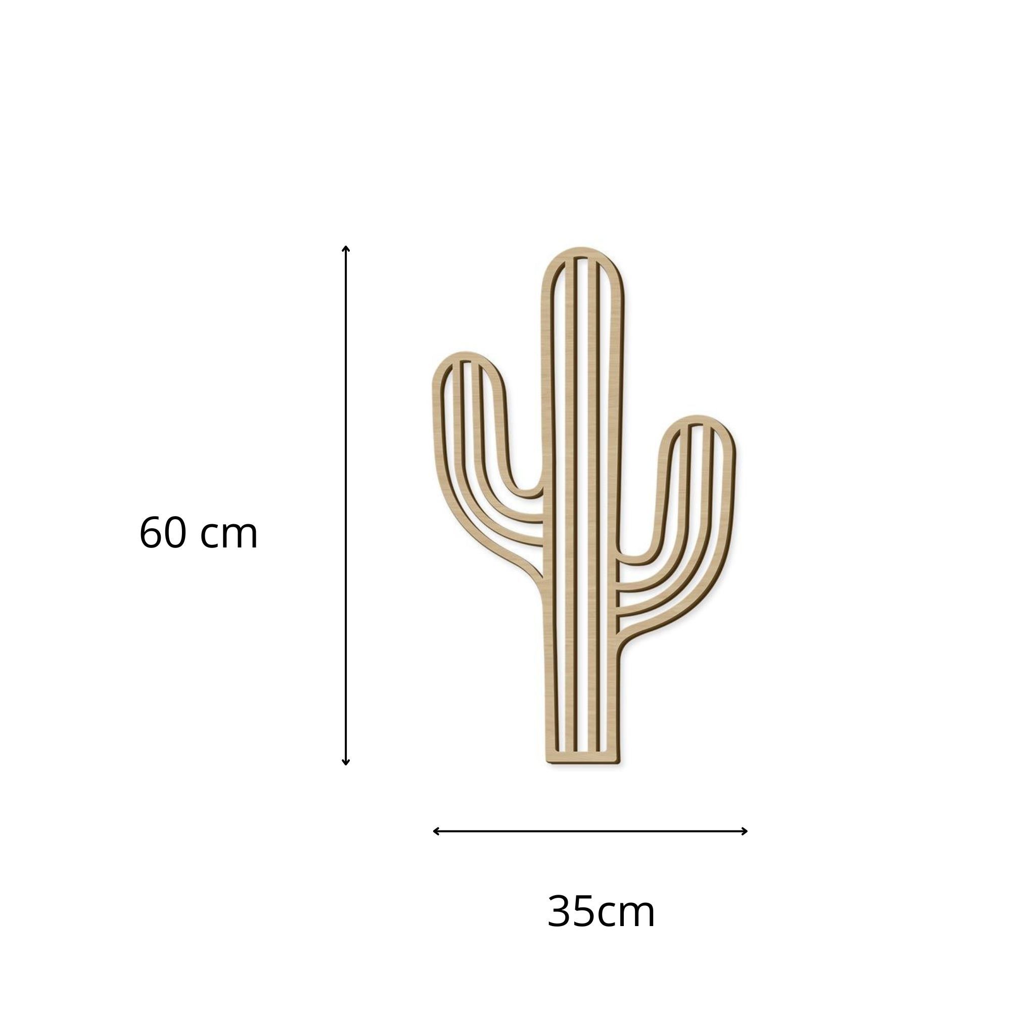 Décoration Murale Cactus en Bois Naturel - Dimensions : L.35 x l.0,4 x H.60 cm