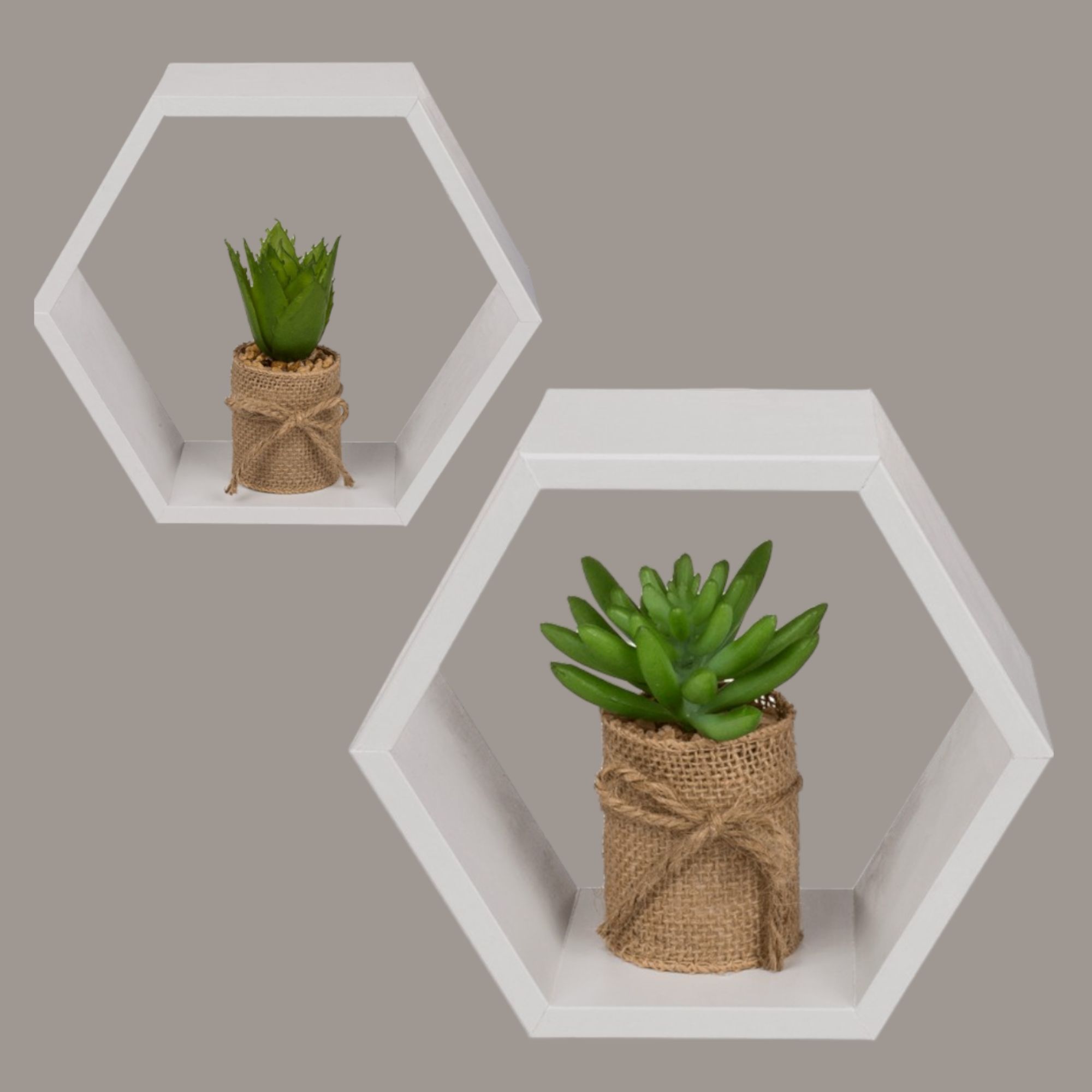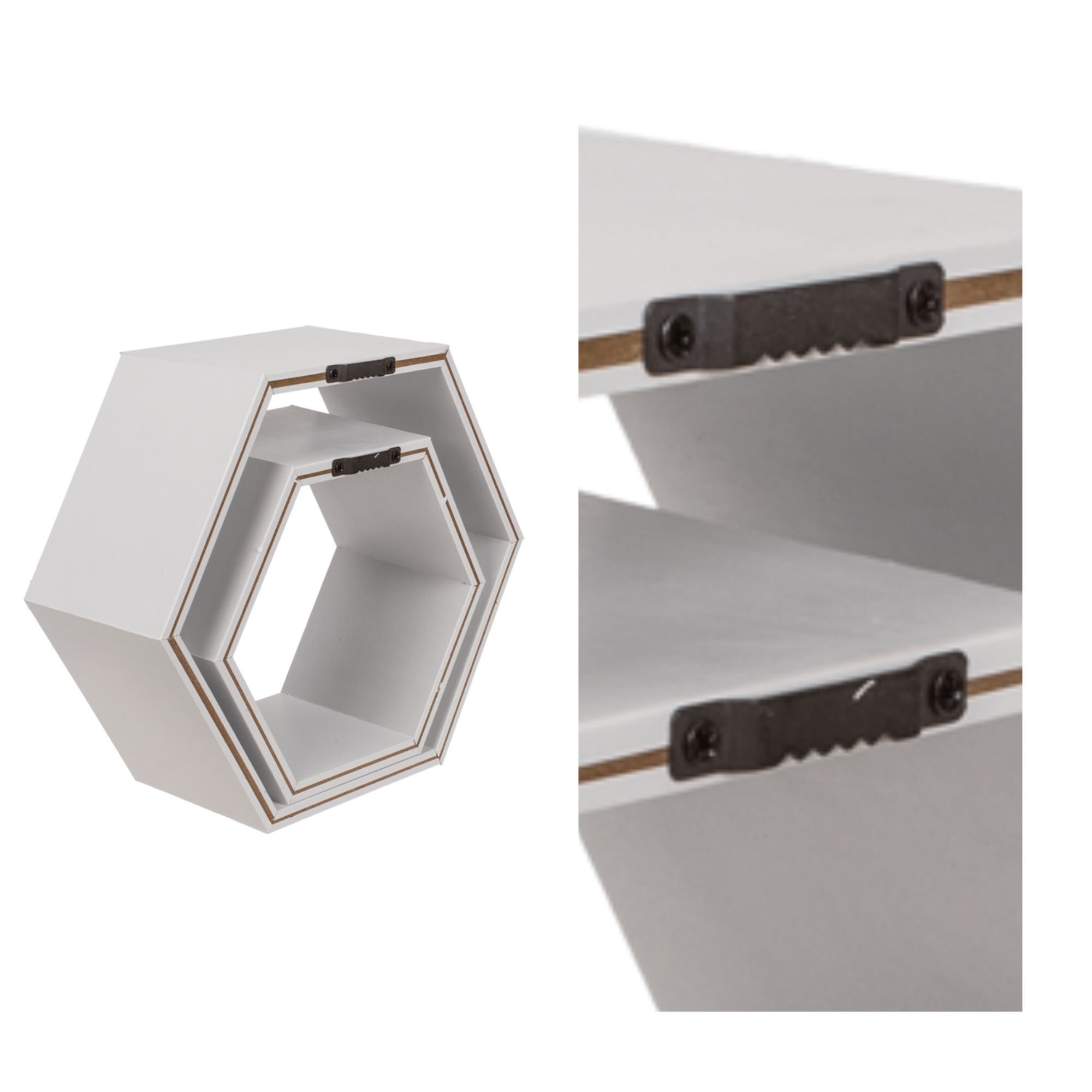 Apportez une touche moderne et fonctionnelle à votre intérieur avec ce lot de 2 étagères hexagonales. Leur design géométrique et leur finition blanche s'intègrent parfaitement à tout style de décoration.