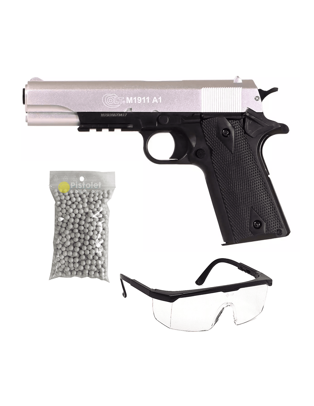 - 1 Colt 1911 Metal Slide Dual Tone Silver/Black Cybergun (référence : 180132)