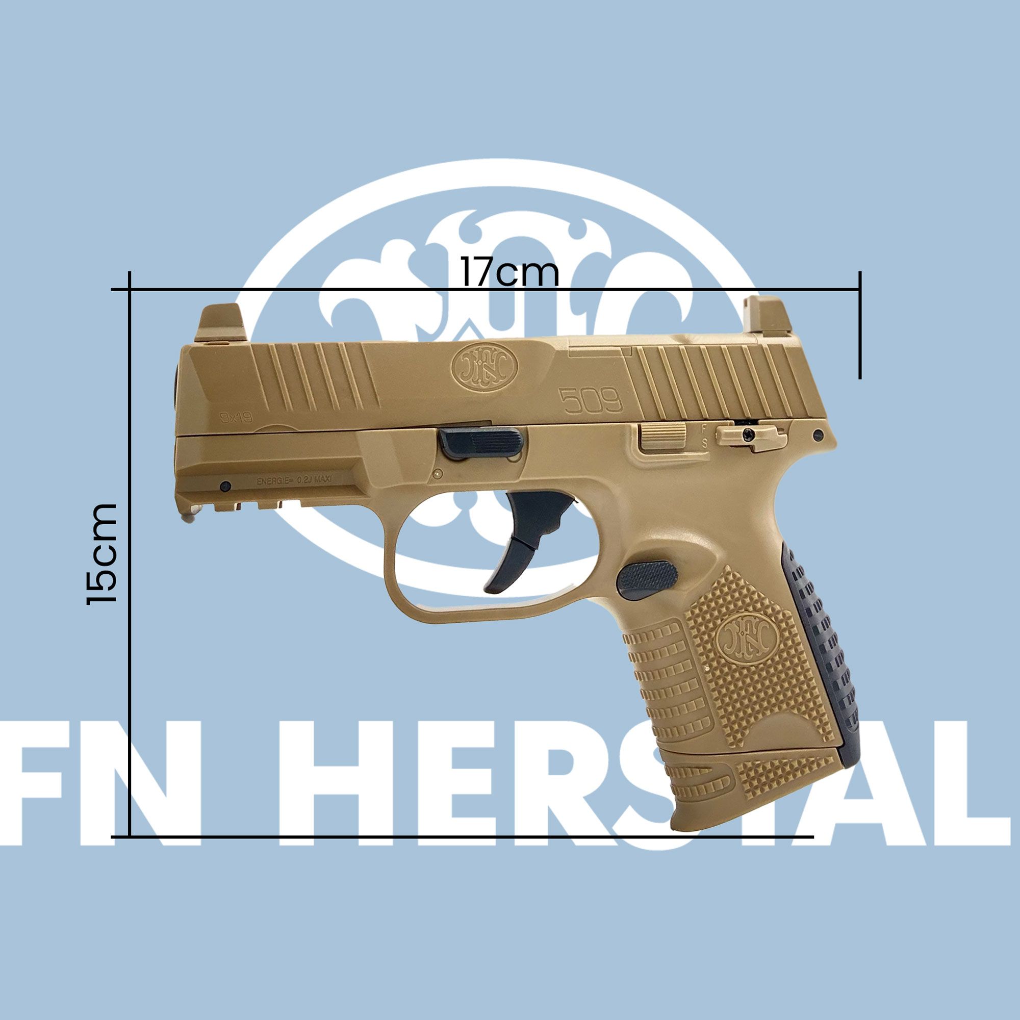 - Réplique airsoft FN Herstal 509 Compact MRD FDE Tan.