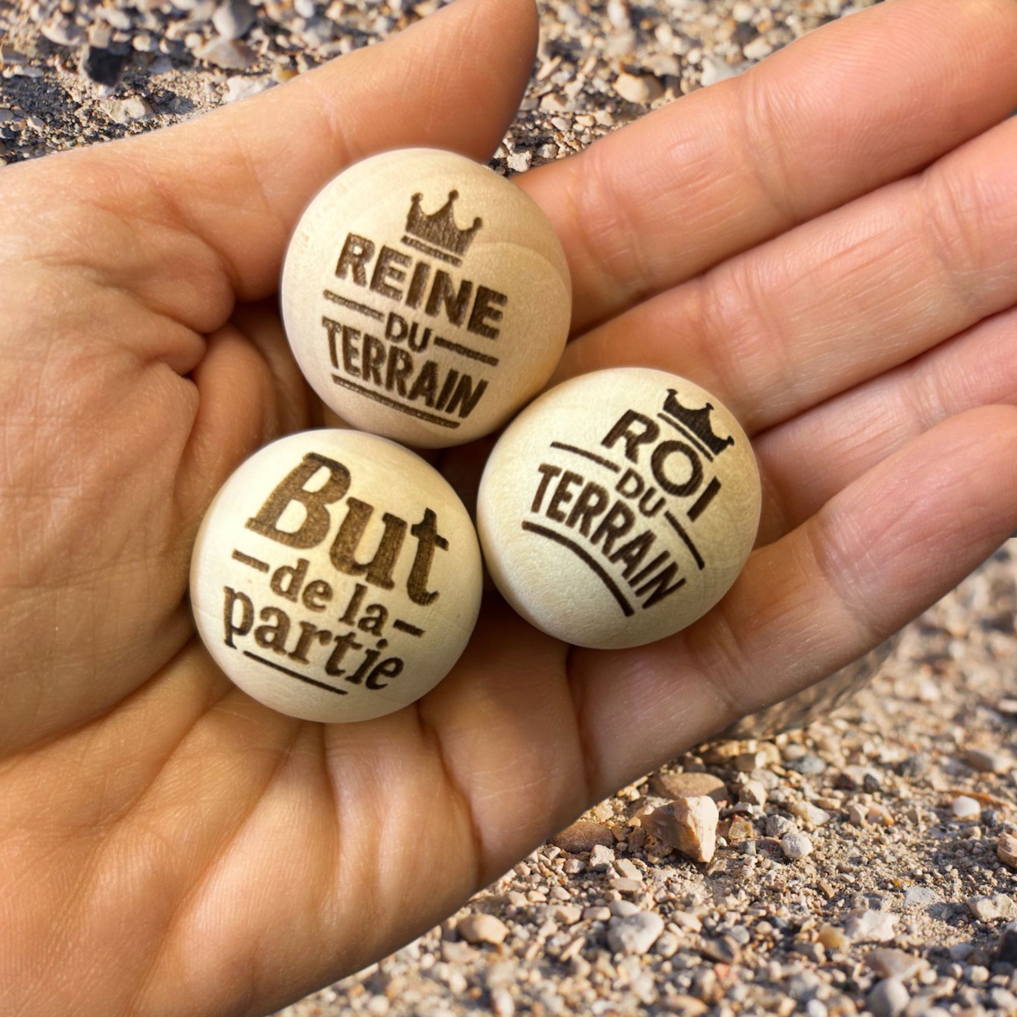 Lot de 3 Cochonnets de Pétanque en Bois avec Message