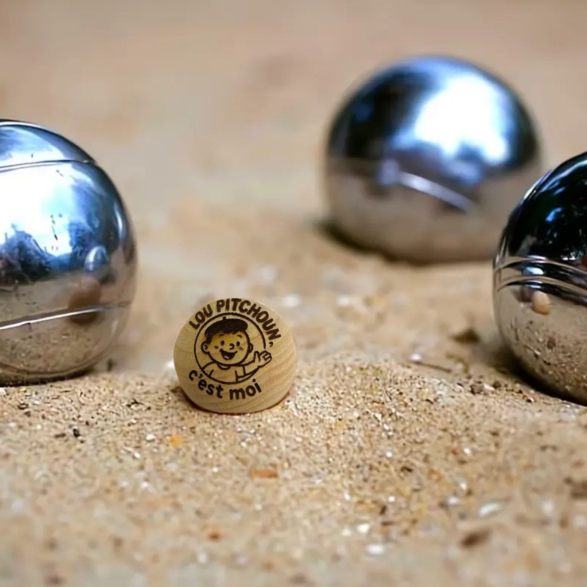 Découvrez notre lot de 3 cochonnets de pétanque en bois personnalisés avec messages humoristiques. Gravure laser durable, idéal pour cadeau ou club. Livraison rapide !