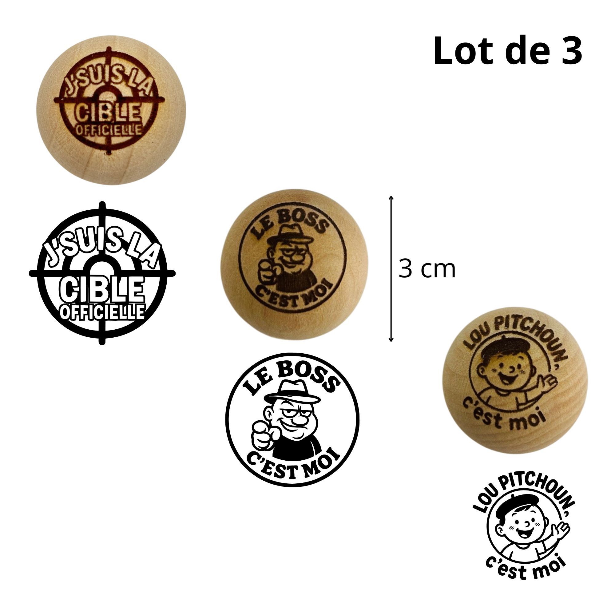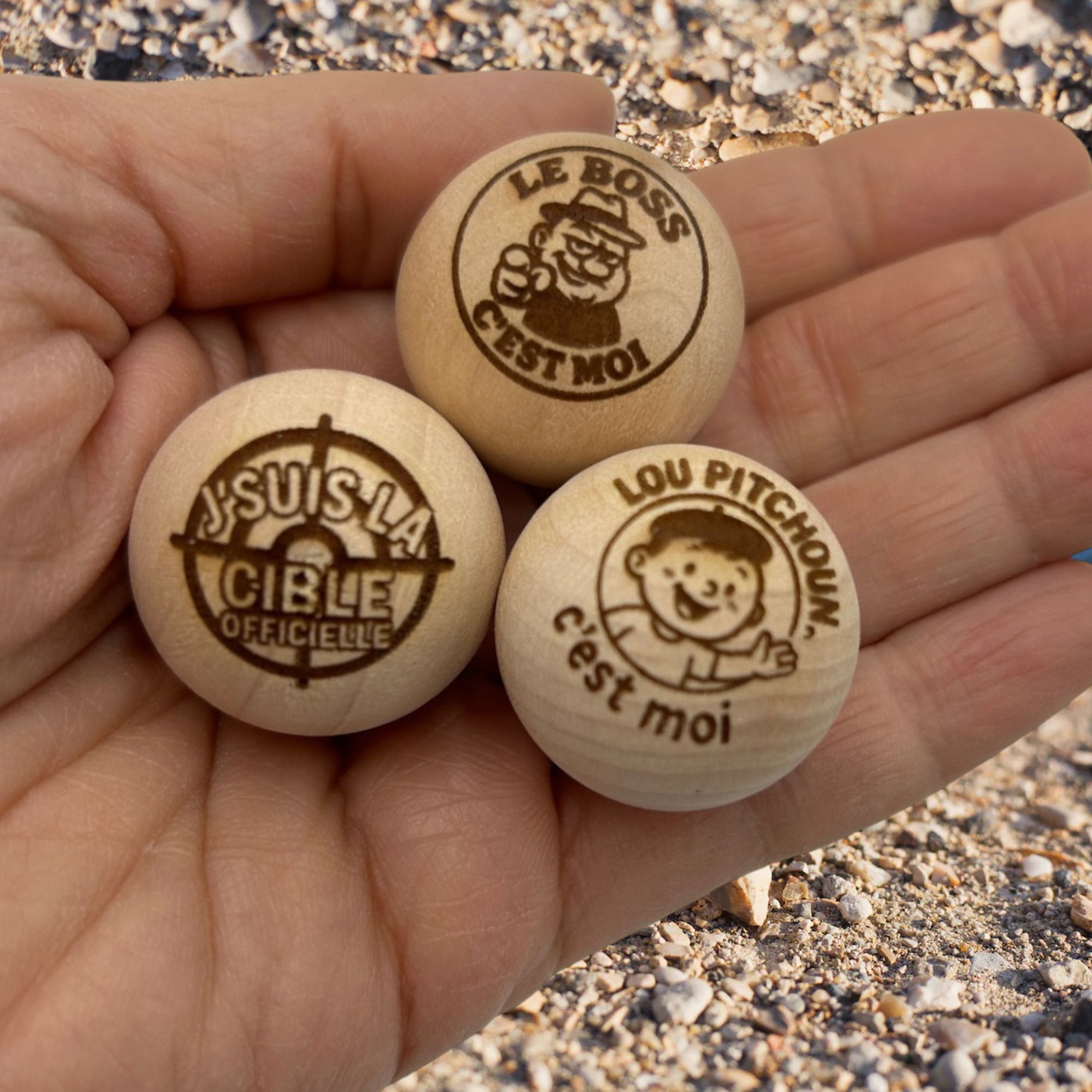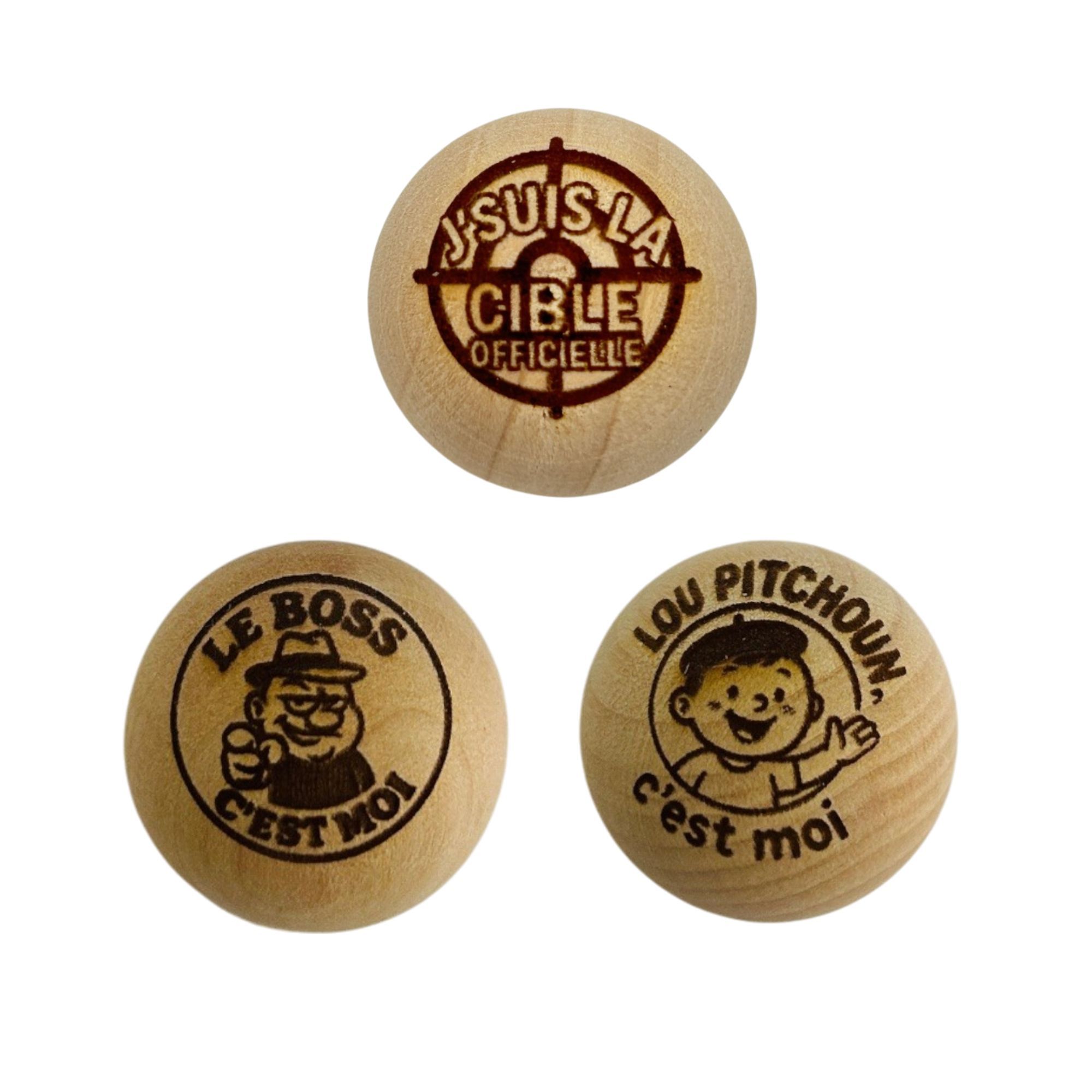 Lot de 3 Cochonnets de Pétanque en Bois avec Message