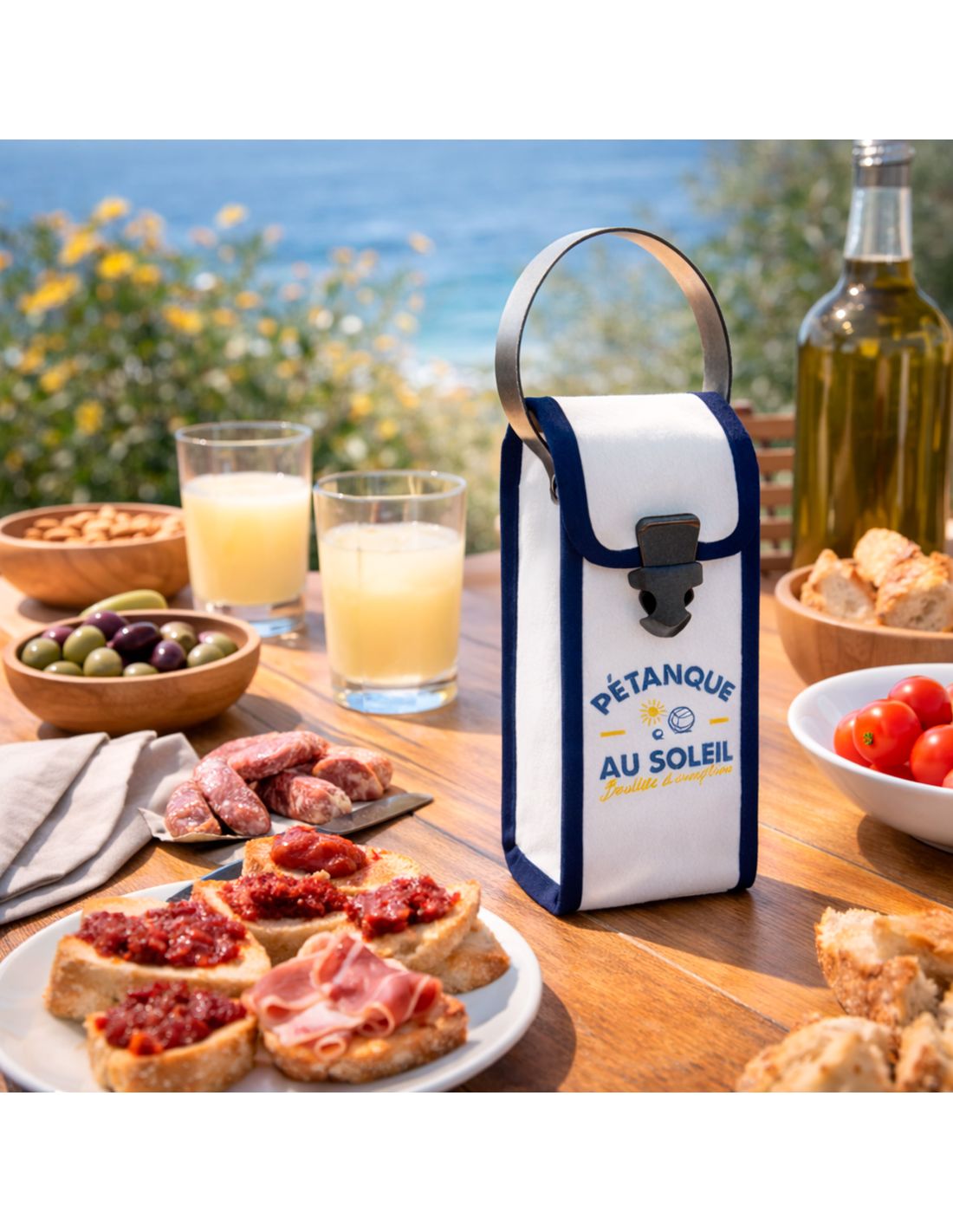 Le modèle "Pétanque au soleil - Bouliste d'exception" s'adresse aux passionnés qui recherchent un accessoire de pétanque aussi esthétique que fonctionnel. Parfait pour les parties estivales, cet étui de pétanque blanc et bleu se distingue par son élégance et sa finition soignée en simili cuir.