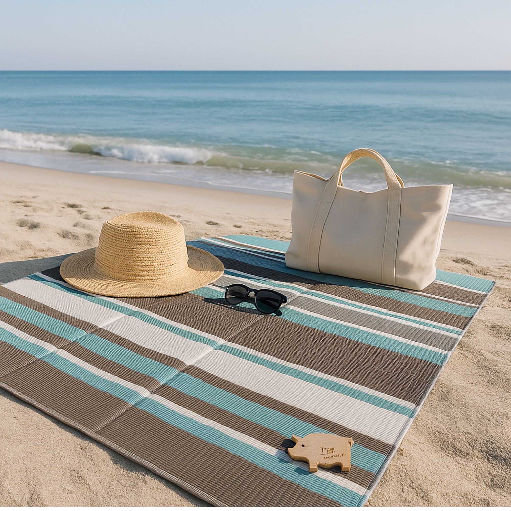 - Matériau Plastique Haute Qualité : Le tressage en plastique résistant assure une durabilité exceptionnelle face aux UV, au sable et à l'humidité, tout en étant facile à nettoyer d'un simple coup d'éponge.