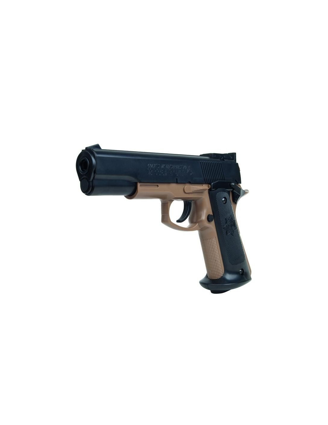 Notons la présence d' une crosse ergonomique antidérapante et des sigles et marquages officiels colt sur le corps de la réplique.