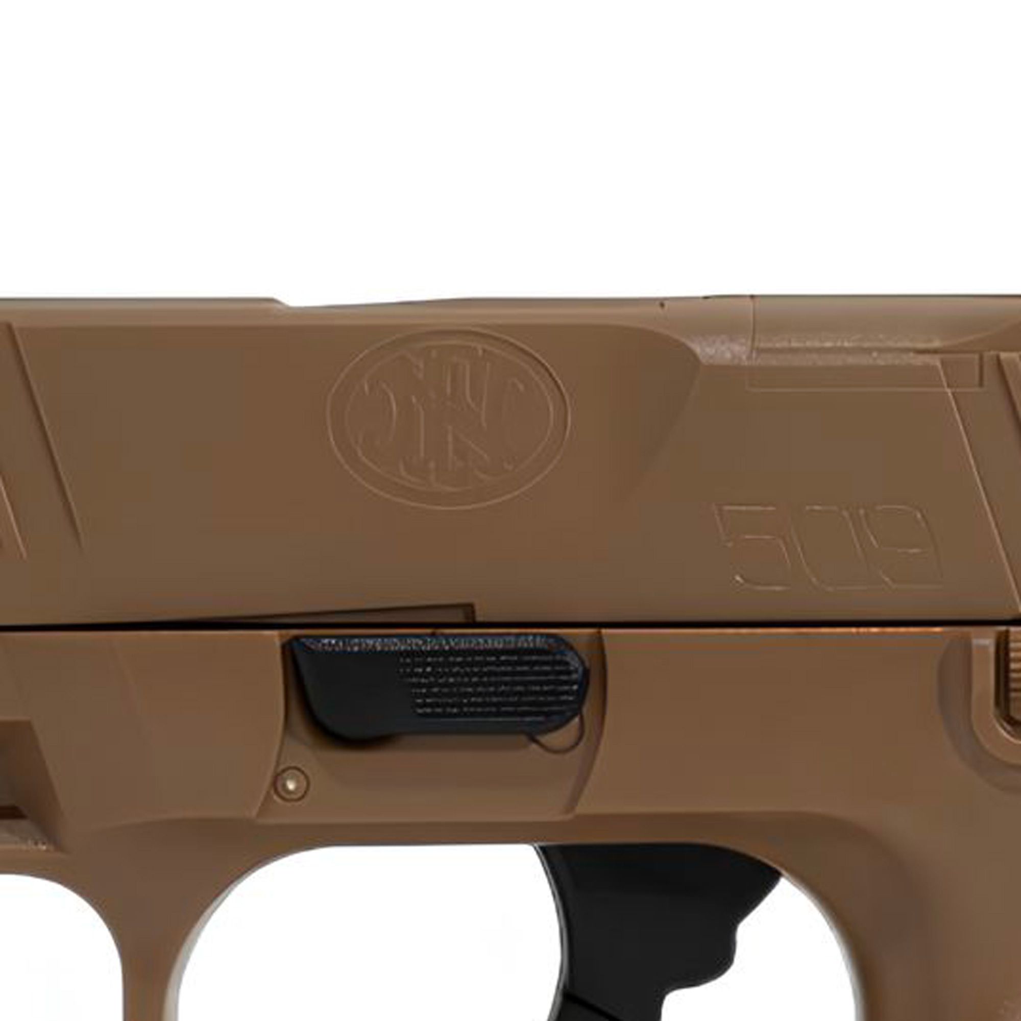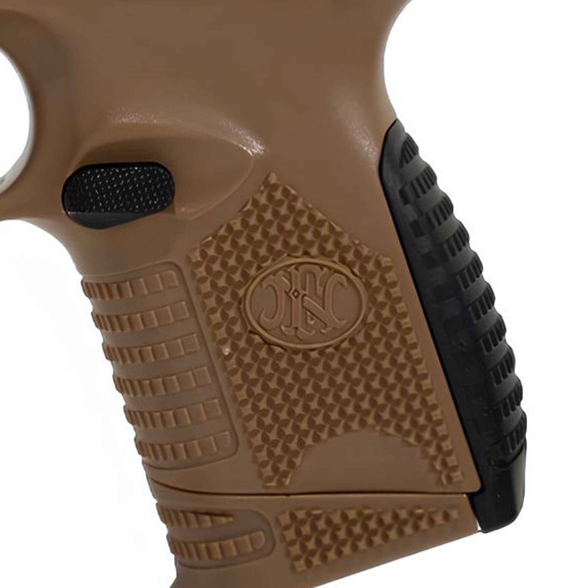 - Le FN 509 Tactical FDE Tan à ressort Cybergun 200110 dispose d'un grip anti dérapant.