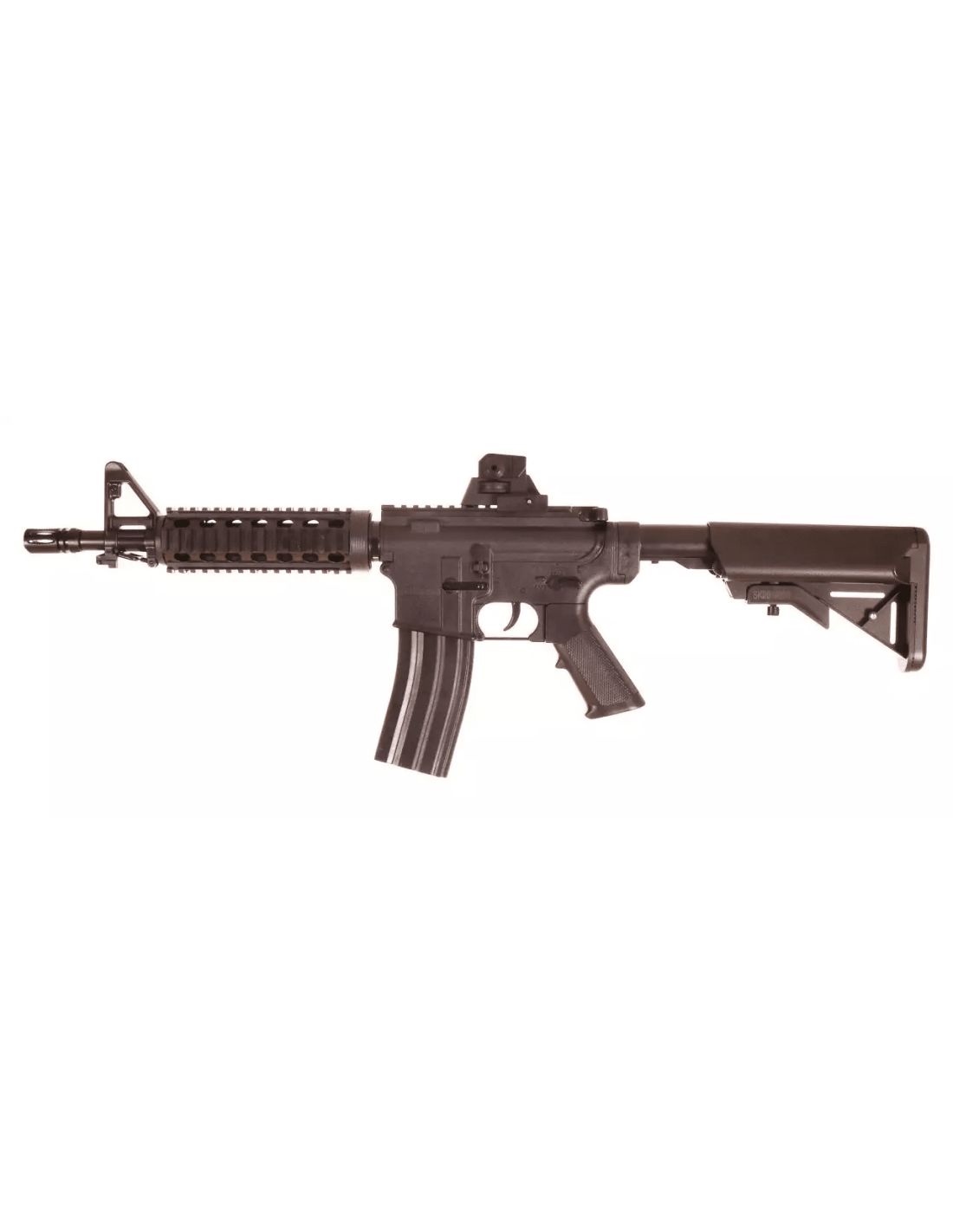 Saigo Defense vous propose son fusil airsoft M4 CQB de type spring (ressort) en plastique ABS de couleur noir.