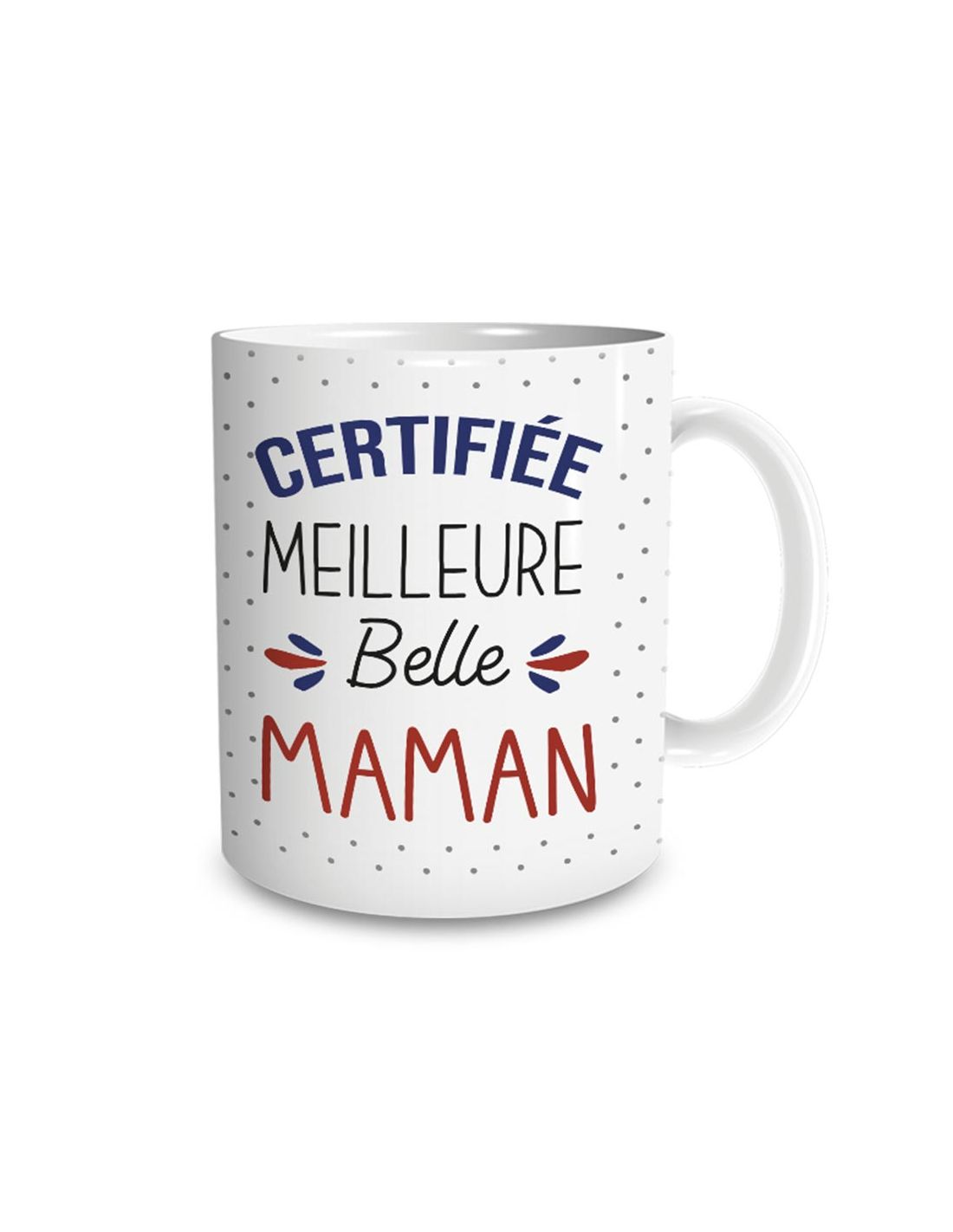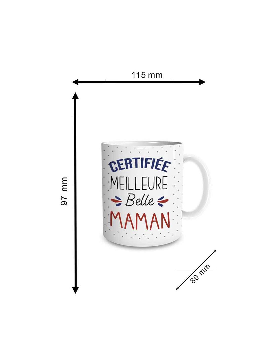 La Tasse Mug Imprimée "Certifiée Meilleure Belle Maman" est un cadeau parfait pour la fête des mères, un anniversaire ou toute autre occasion spéciale pour votre belle mère. Elle peut également être utilisée comme objet publicitaire ou cadeau promotionnel pour les entreprises.