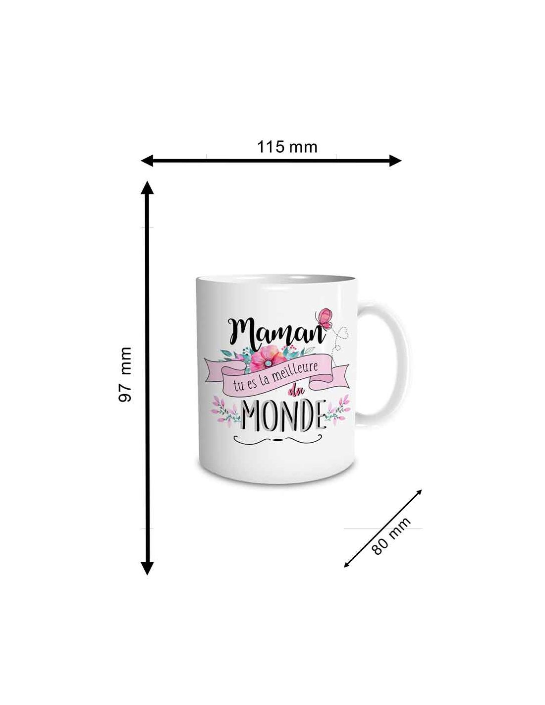 Tasse (Mug) Imprimé "Maman Tu es la Meilleure du Monde" / Dimension : 11,5 x 8 x 9,7 cm