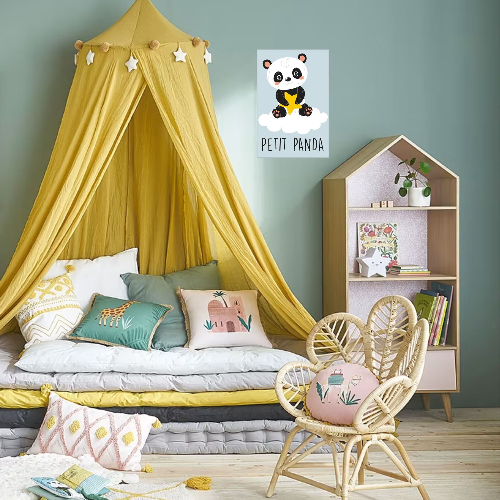 Facile à suspendre, cet élément décoratif s'intègre harmonieusement dans tout espace d'enfant, ajoutant une note ludique et encourageant le développement créatif des tout-petits. Son design en fait un accessoire pour stimuler l'imagination des enfants, tout en ajoutant une dimension douce et reposante à la chambre.