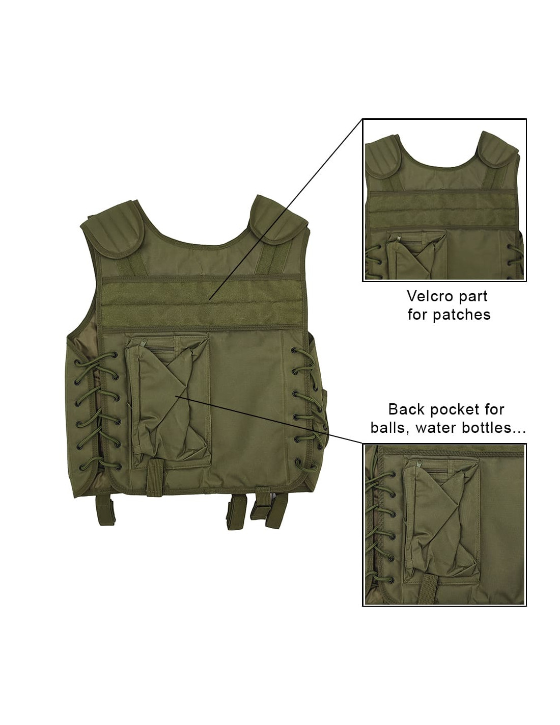 Elle propose aussi un holster universel pour transporter une réplique de poing et une poche large à l'arrière pouvant transporter un sac de billes, une gourde ou divers accessoires .