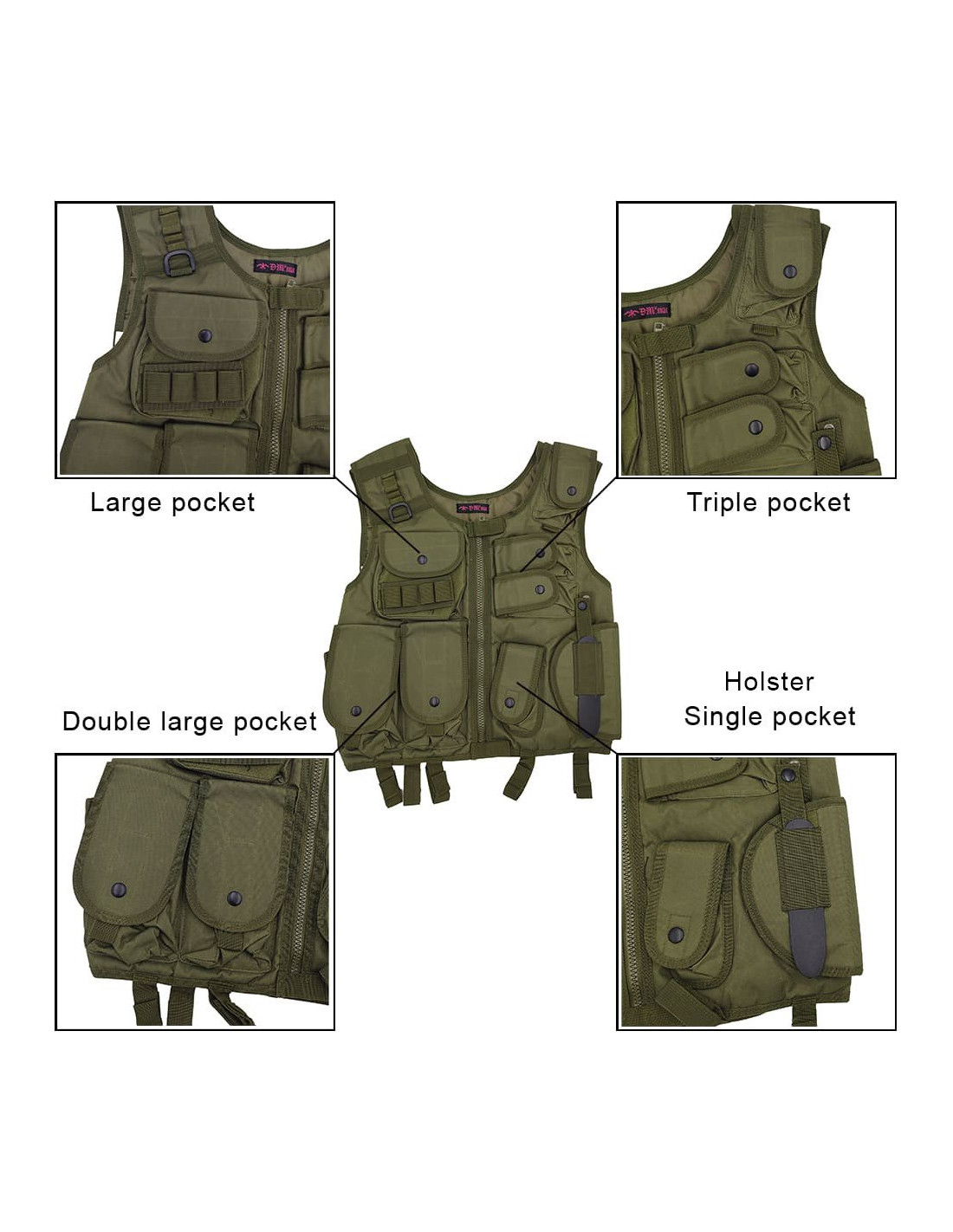 Veste Tactique OD Swat 8 Poches Holster DMoniac 911310.
